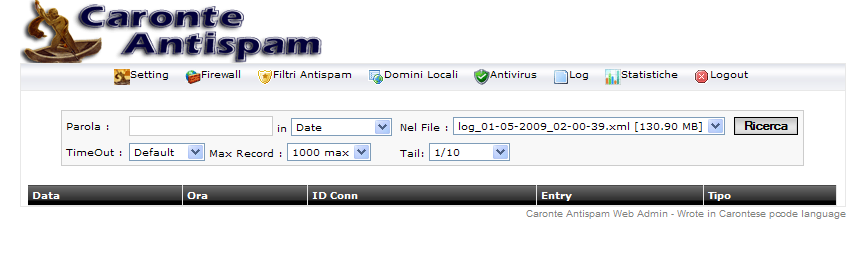 Every time that Caronte Antispam will make the log rotation, logs will be register in the directory "LOGS" of the software, where every file quotes in the name the date/time of the archivation.